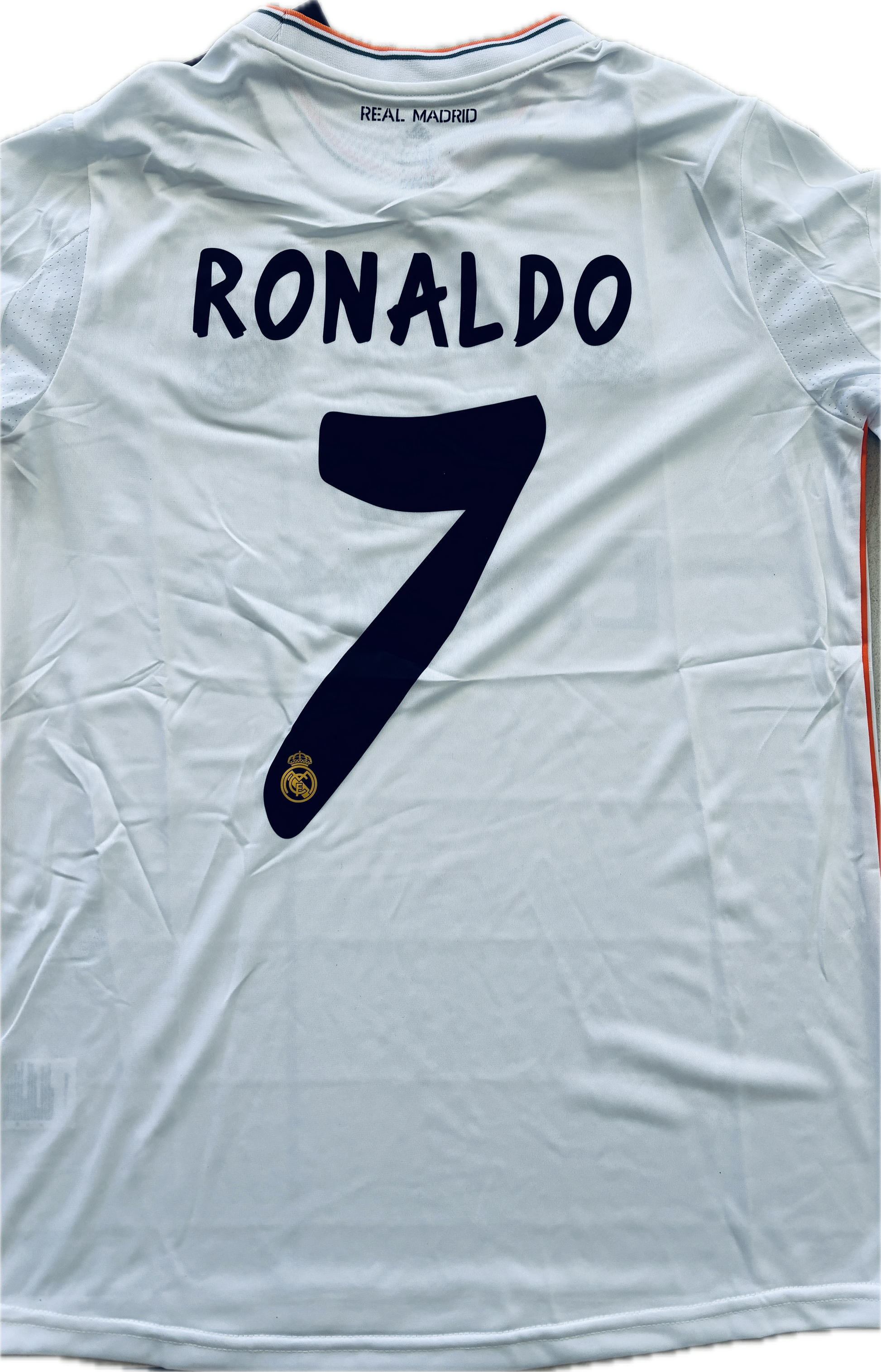 The photos are of the actual jersey  celebrate the Lisbon Finals Game Real Madrid win over Atletico Madrid champions League game this is not a stock photo with all the correct patches and lettering.